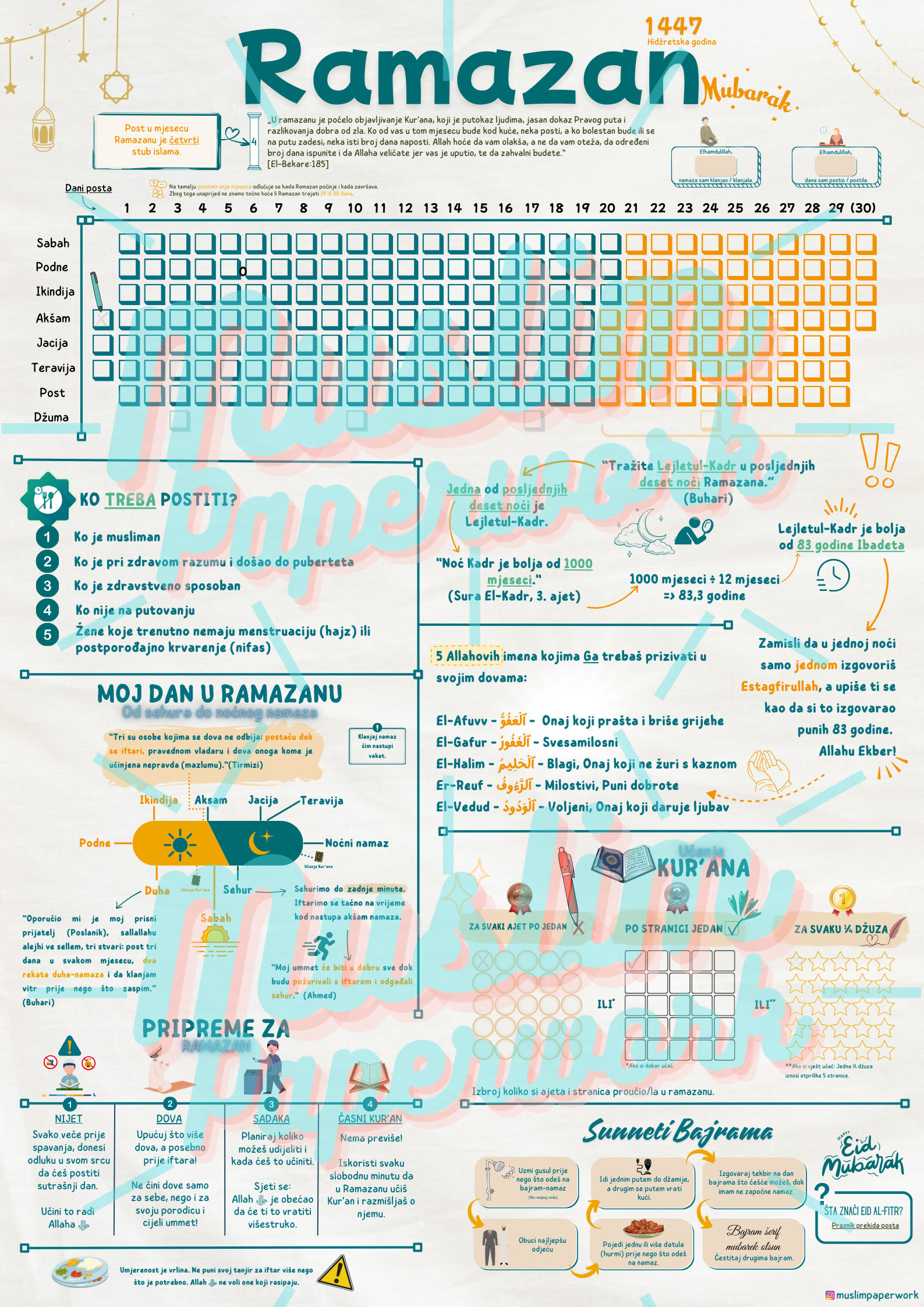 Ramadan-Poster auf Bosnisch | Gebets- und Fastentracker | A3 | 2 Seiten |
